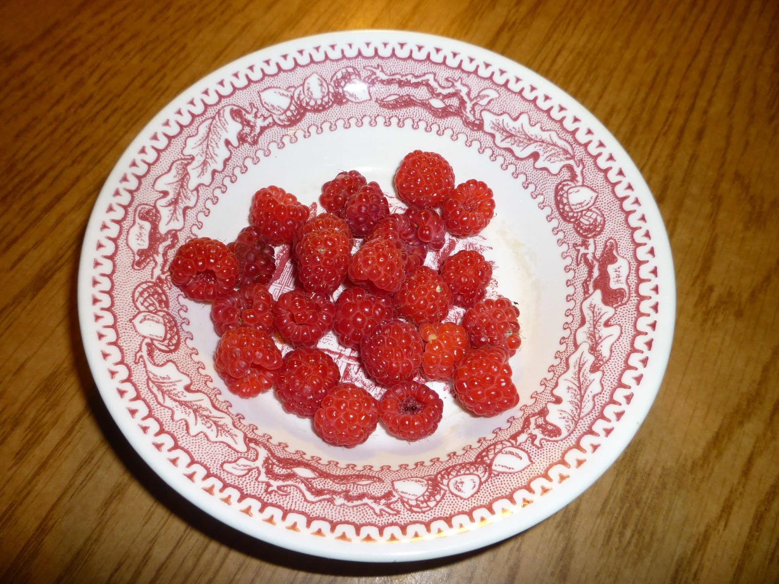 Another garden surprise: a few raspberries from a stand D. planted years ago but we haven't really taken care of, so they are choked with weeds and the birds get most of them. This is a terrific year for berries (although we dropped the ball with our strawberries; they were riddled with pests) so we even managed to get some of these beauties. The blueberries are just coming in and look like there will be a lot.